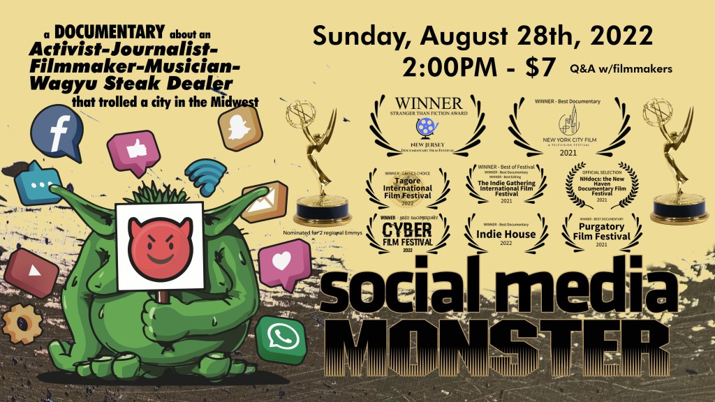 a screening of Social Media Monster, a 2 time regional Emmy nominated documentary by Columbus filmmaker Peter John Ross. Tickets $7