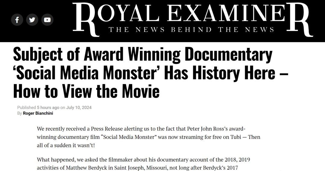 “What makes Social Media Monster stand out from all those other stories is that the citizens of St. Josephs were all united in defending one another against Berdyck’s claims”