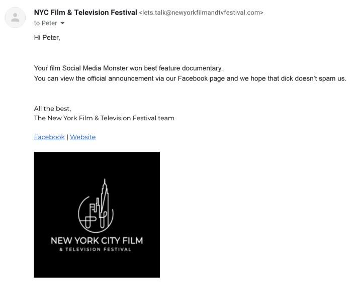 film festival WINS (so far….)